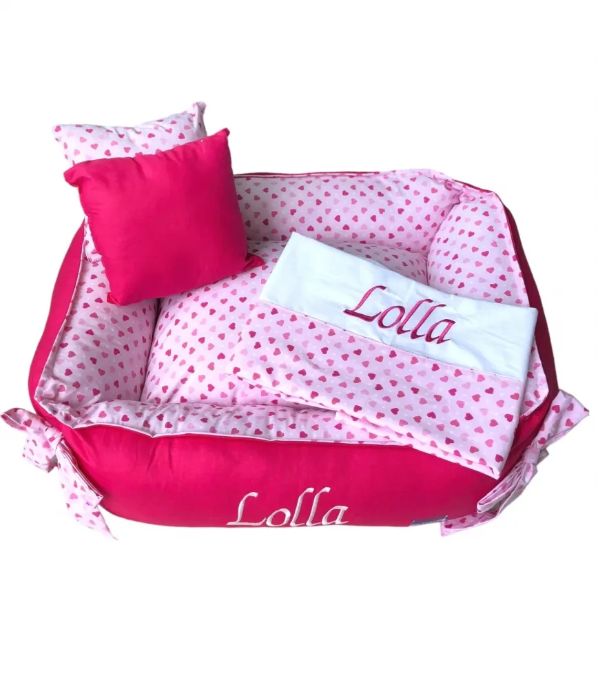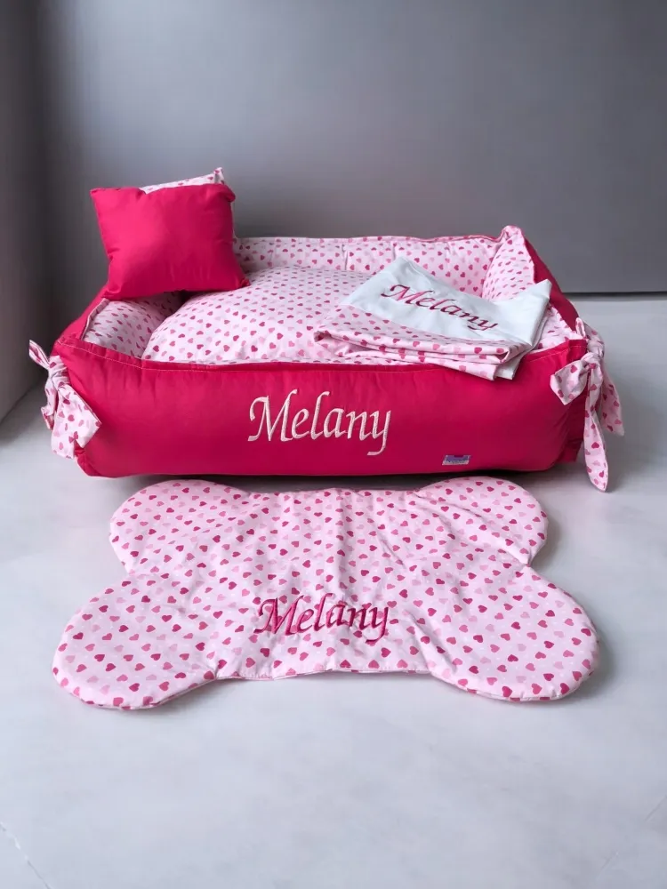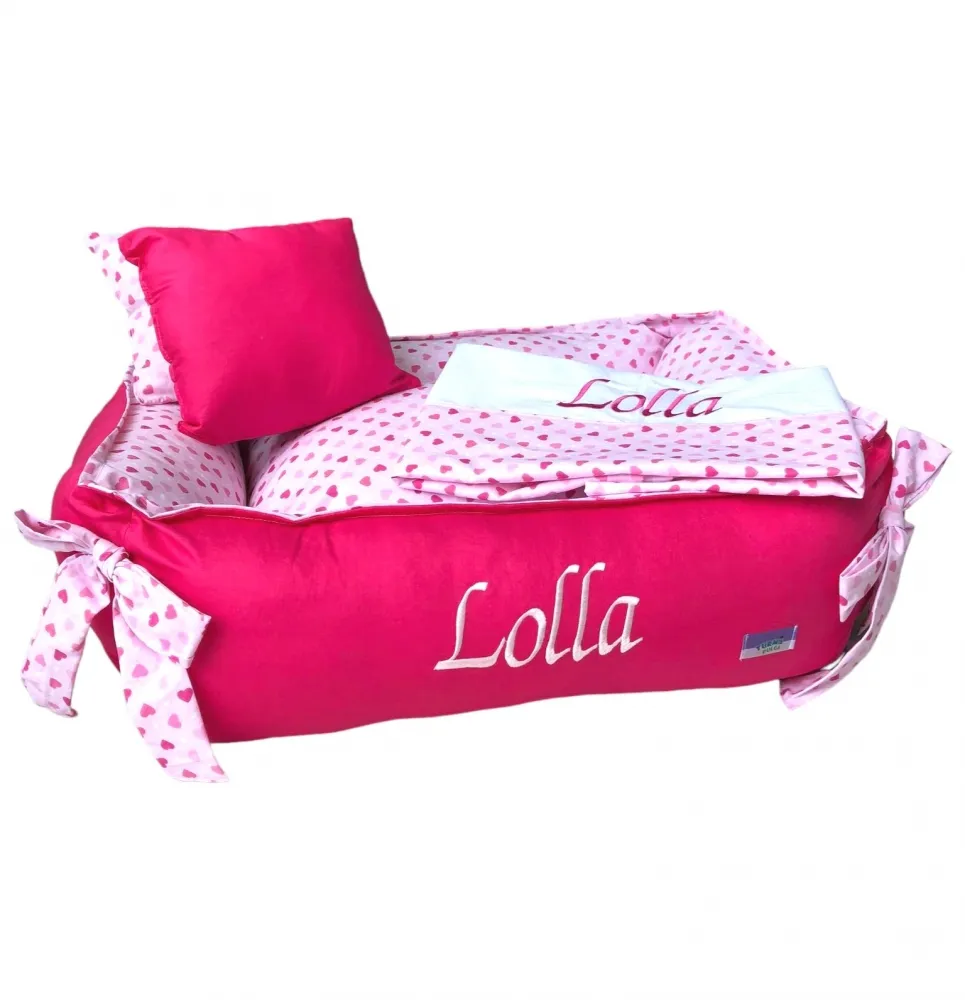 Composição: Tecido 100% algodão em toda a cama, almofadas e lençol | Enchimento em fibra sintética | Fundo em Bagun ( resistente a umidade )